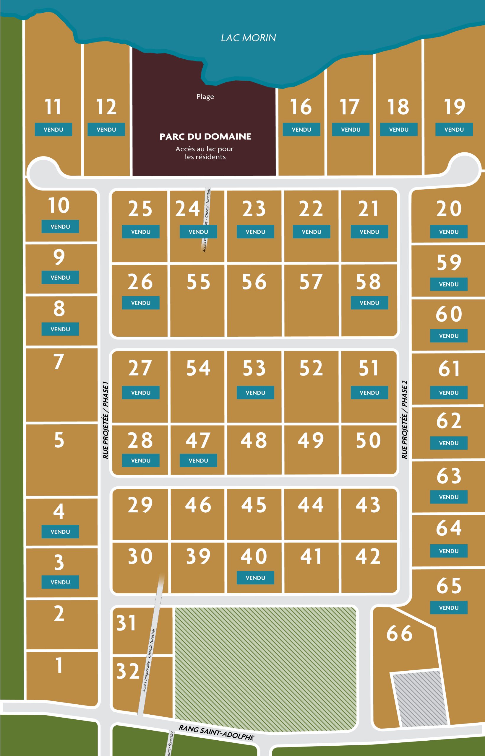 Le Domaine du lac Morin, c’est un nouveau quartier où les rues éclairées seront remises à la municipalité par le promoteur. Les rues seront éventuellement pavées par la municipalité. Celle-ci assurera l’entretien des rues, le déneigement, le ramassage des ordures. Un réseau électrique sera disponible dans les rues.